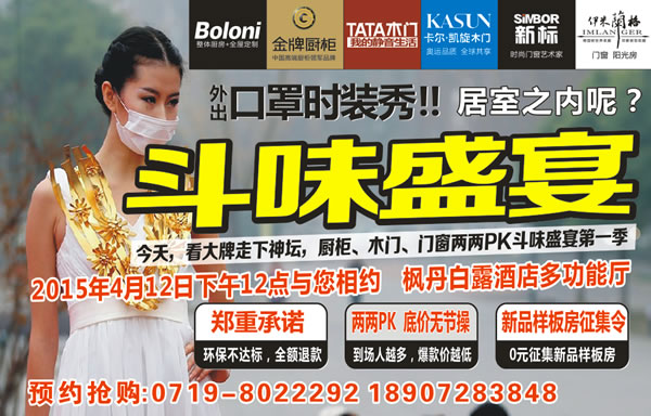 今天,看大牌走下神壇,櫥柜,木門(mén),門(mén)窗兩兩PK斗味盛宴第一季開(kāi)始啦,朋友們速來(lái)圍觀吧!2015年4月12日中午十二點(diǎn)楓丹白露酒店多功能廳將迎來(lái)家居品牌的PK斗味盛宴,屆時(shí)各大家居品牌將舉行大放價(jià)活動(dòng),并給出鄭重承諾,環(huán)保不達(dá)標(biāo),全額退款!到場(chǎng)客戶越多價(jià)格越低,歡迎朋友們前來(lái)圍觀。參展品牌及活動(dòng)如下:十堰裝飾網(wǎng)<span>十堰萬(wàn)網(wǎng)傳媒</span><p>十堰網(wǎng)絡(luò)公司</p> <div>十堰網(wǎng)站設(shè)計(jì)</div> <div>十堰網(wǎng)站設(shè)計(jì)</div>